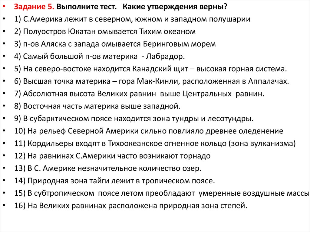 Задание 4. Выпишите крупные озёра Северной Америки в порядке с севера на юг.