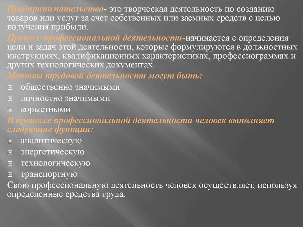 Профессиональная деятельность-это деятельностьчеловека по своей профессии и специальности в