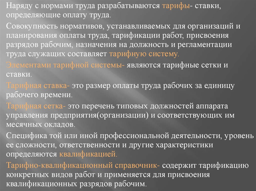 Наряду с нормами труда разрабатываются тарифы- ставки,определяющие оплату труда.