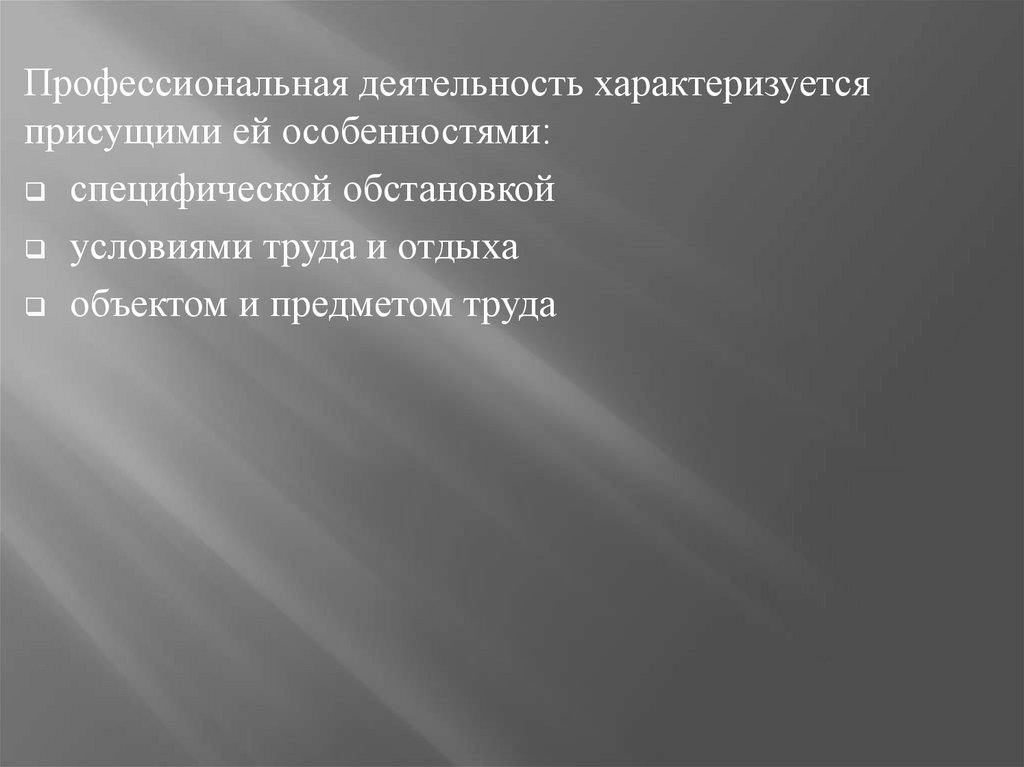 Профессиональная деятельность характеризуетсяприсущими ей особенностями:
