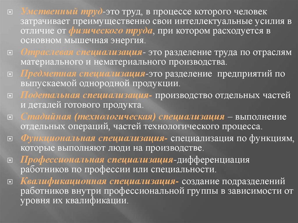 Предметная специализация-это разделение предприятий по