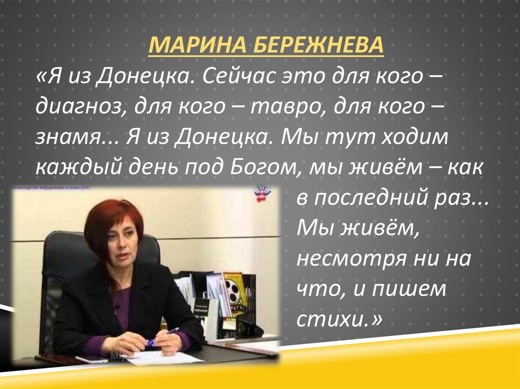 МАРИНА БЕРЕЖНЕВА«Я из Донецка. Сейчас это для кого –