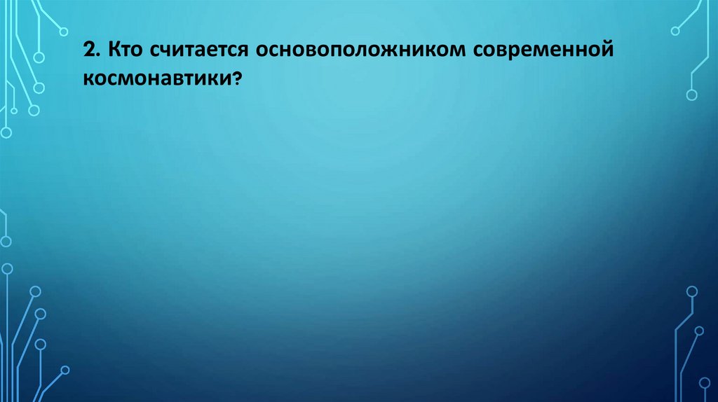 2. Кто считается основоположником современнойкосмонавтики?
