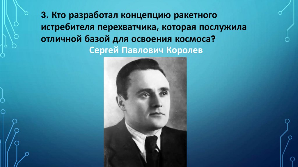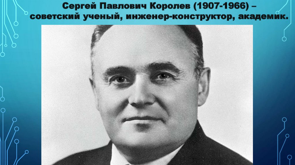 Сергей Павлович Королев (1907-1966) –советский ученый, инженер-конструктор, академик.