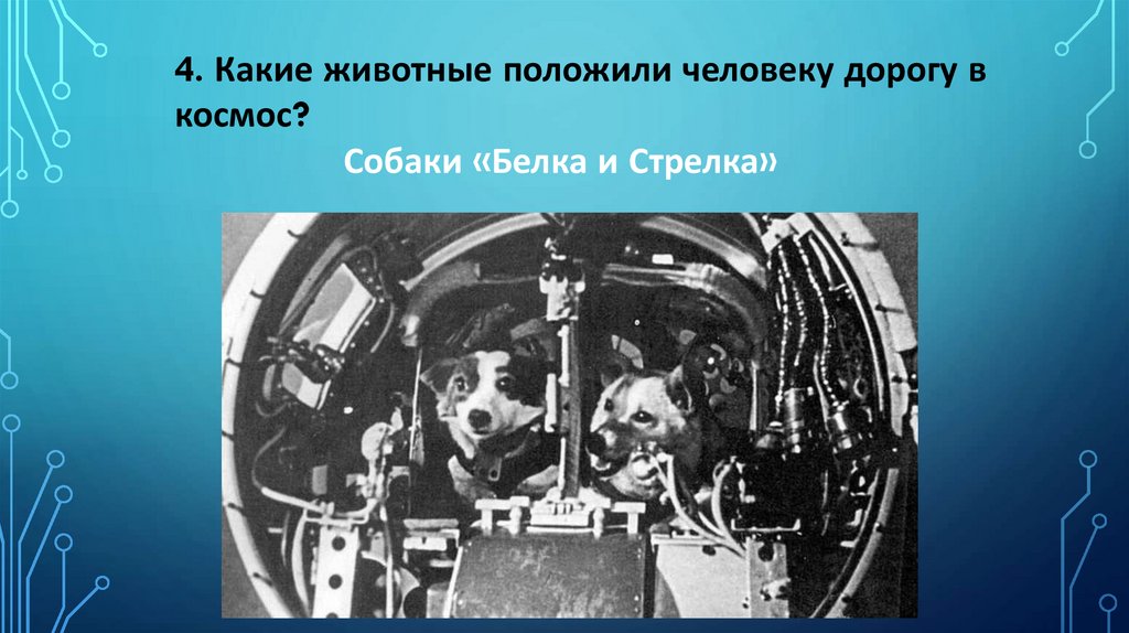 4. Какие животные положили человеку дорогу вкосмос?