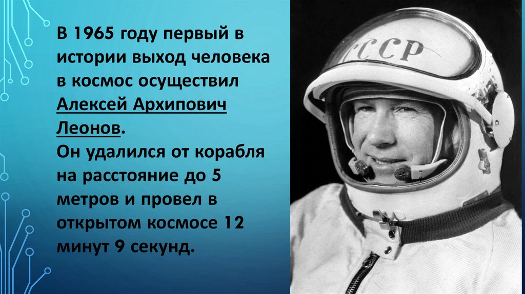 В 1965 году первый вистории выход человека