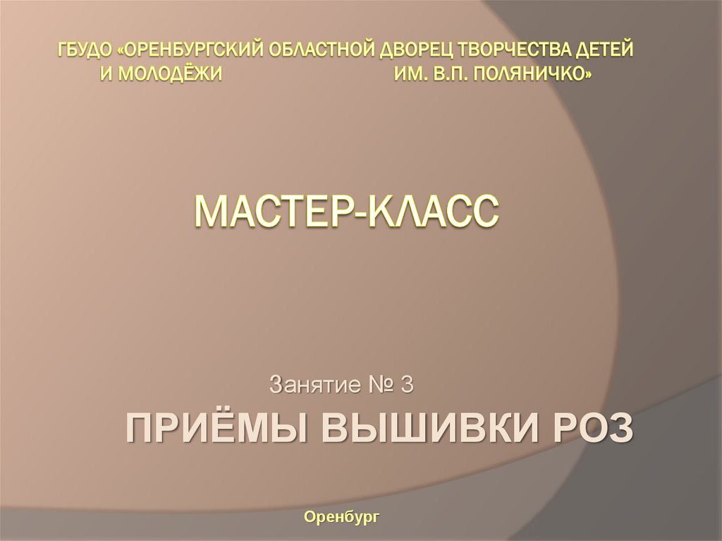 1. ГБУДО «Оренбургский областной Дворец творчества детей и молодёжи им. В.П. Поляничко» МАСТЕР-КЛАСС