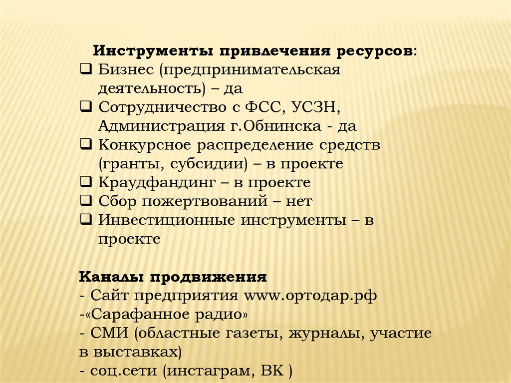 Инструменты привлечения ресурсов:Бизнес (предпринимательская
