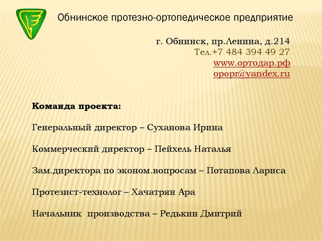 Обнинское протезно-ортопедическое предприятиег. Обнинск, пр.Ленина, д.214