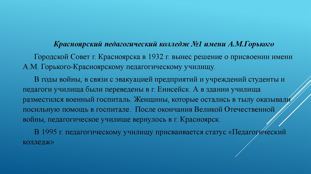 Красноярский педагогический колледж №1 имени А.М.Горького