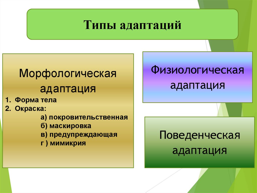 Типы адаптацийМорфологическая