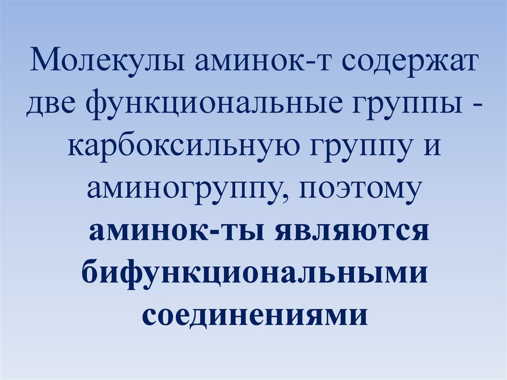 Молекулы аминок-т содержатдве функциональные группы карбоксильную группу и