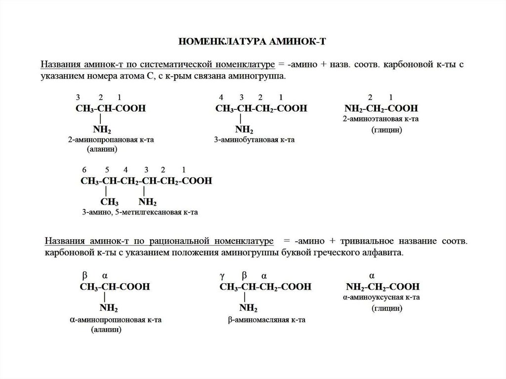 Названия глицина и аланина по номенклатуре ИЮПАК и рациональной