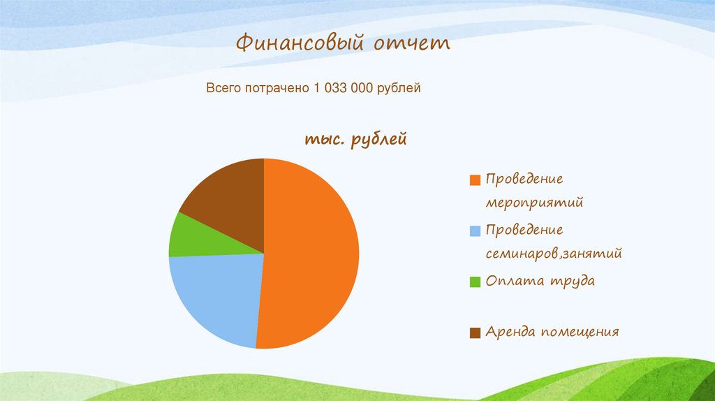 Финансовый отчетВсего потрачено 1 033 000 рублей