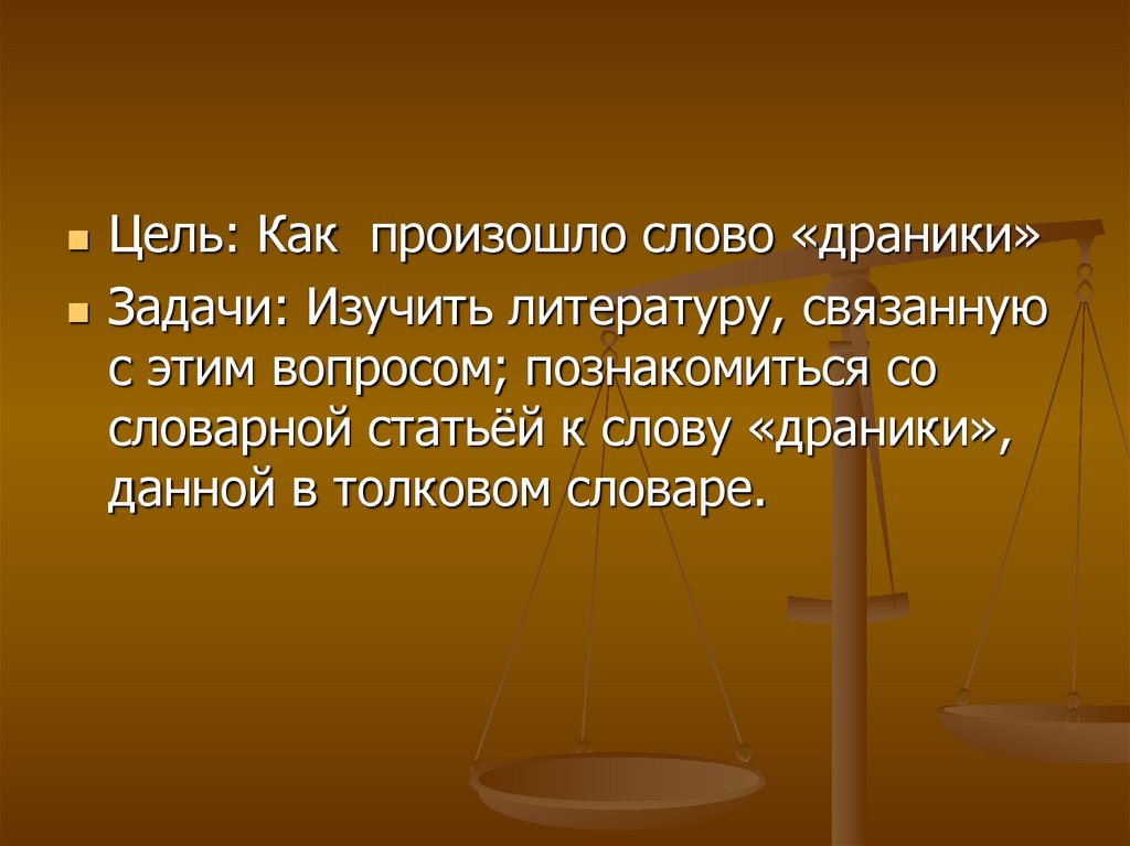 Цель: Как произошло слово «драники»Задачи: Изучить литературу, связанную