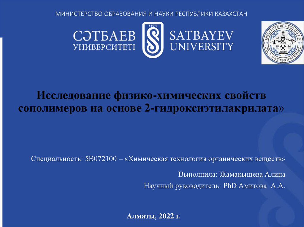 МИНИСТЕРСТВО ОБРАЗОВАНИЯ И НАУКИ РЕСПУБЛИКИ КАЗАХСТАНИсследование физико-химических свойств