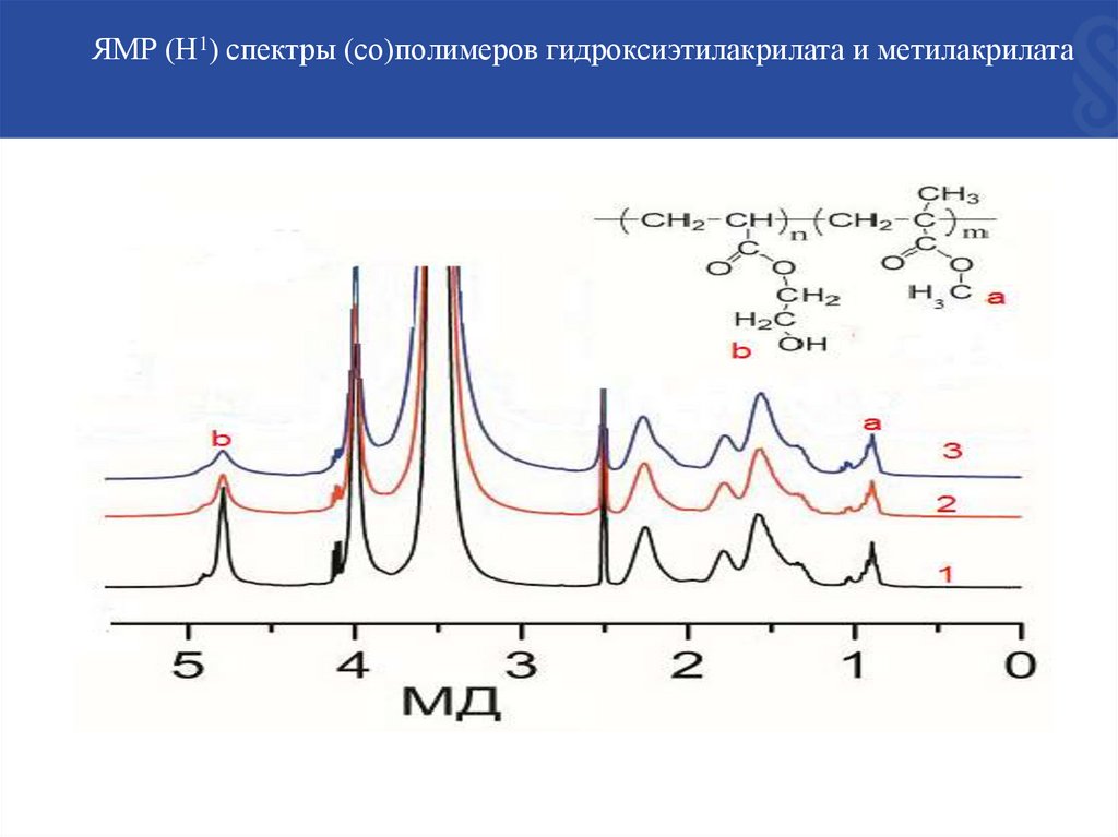 ЯМР (Н1) спектры (со)полимеров гидроксиэтилакрилата и метилакрилатаИМС = ГЭА (1);