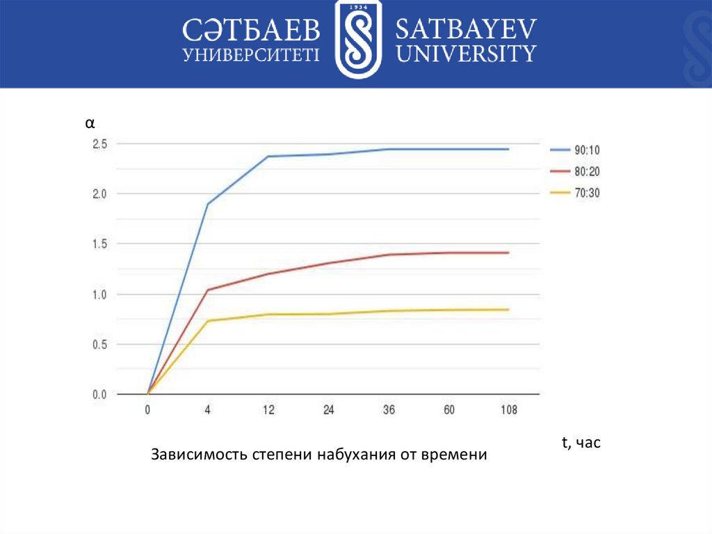 αЗависимость степени набухания от времени