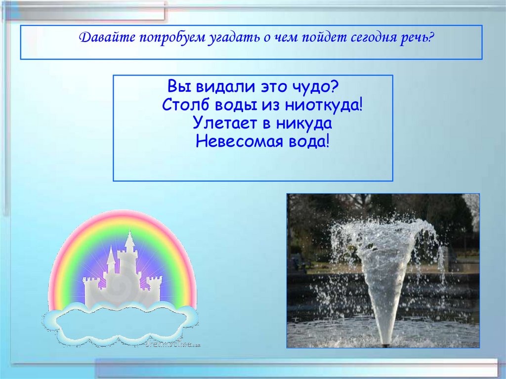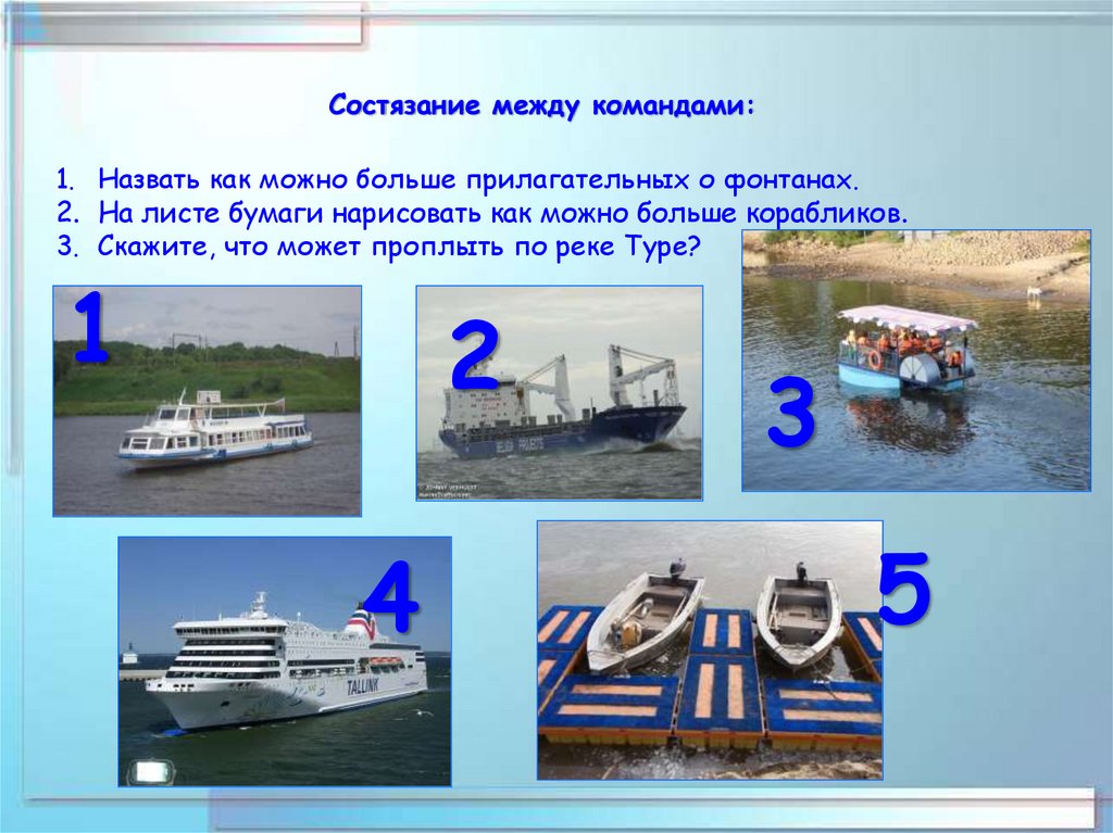 Состязание между командами:1. Назвать как можно больше прилагательных о фонтанах.