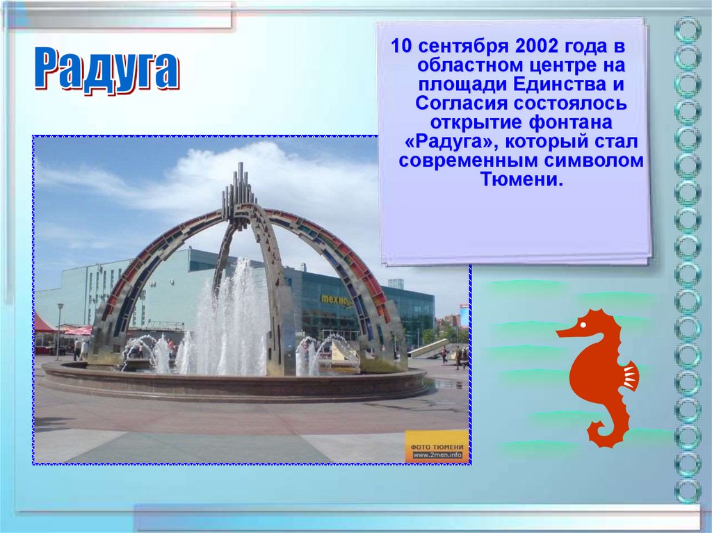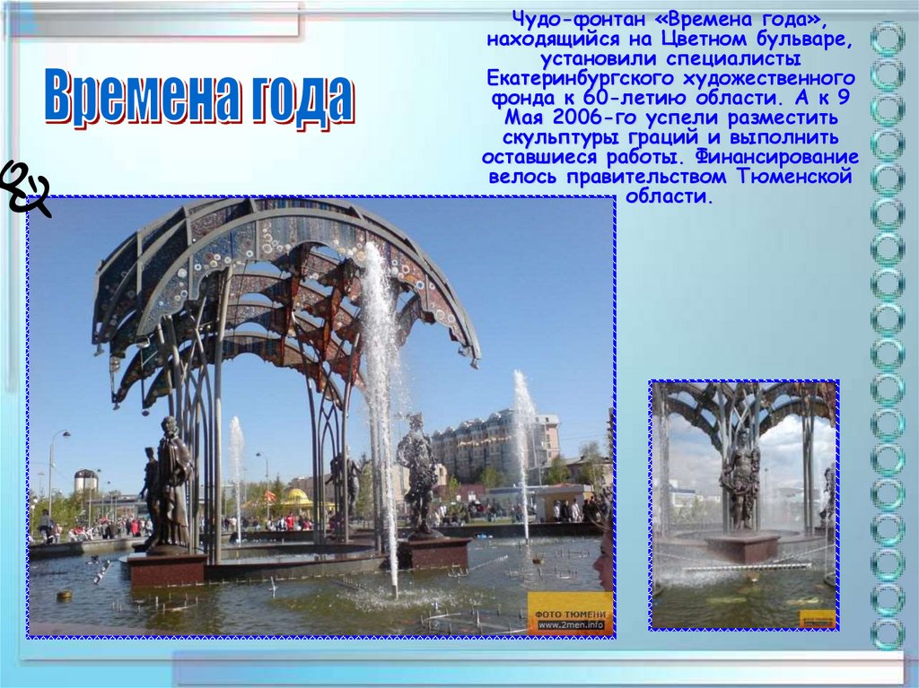 17. Какой из этих фонтанов не находится в городе Тюмени?
