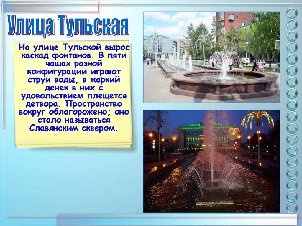 На улице Тульской выроскаскад фонтанов. В пяти
