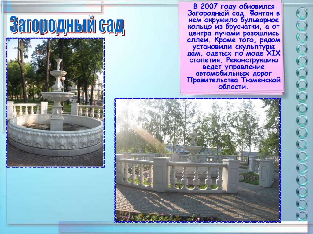 В 2007 году обновилсяЗагородный сад. Фонтан в
