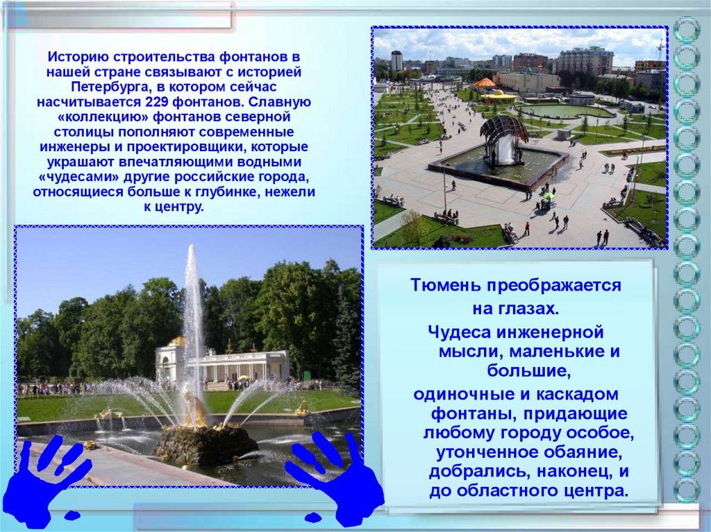 насчитывается 229 фонтанов. Славную
