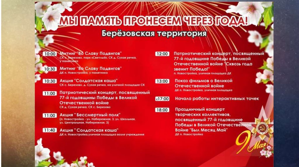 Задачи организации и проведения мероприятий посвященных дню Великой Победы: