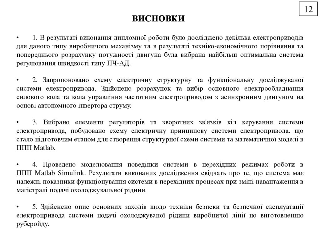 ВИСНОВКИ1. В результаті виконання дипломної роботи було досліджено декілька електроприводів