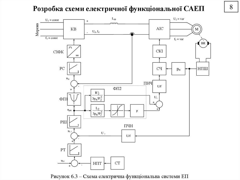 електропривода, побудовано схему електричну принципову системи електропривода. що