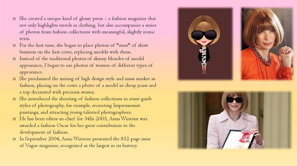 o He has been editor-in-chief for 34In 2003, Anna Wintour was
