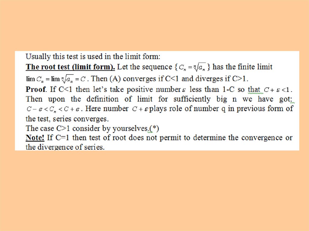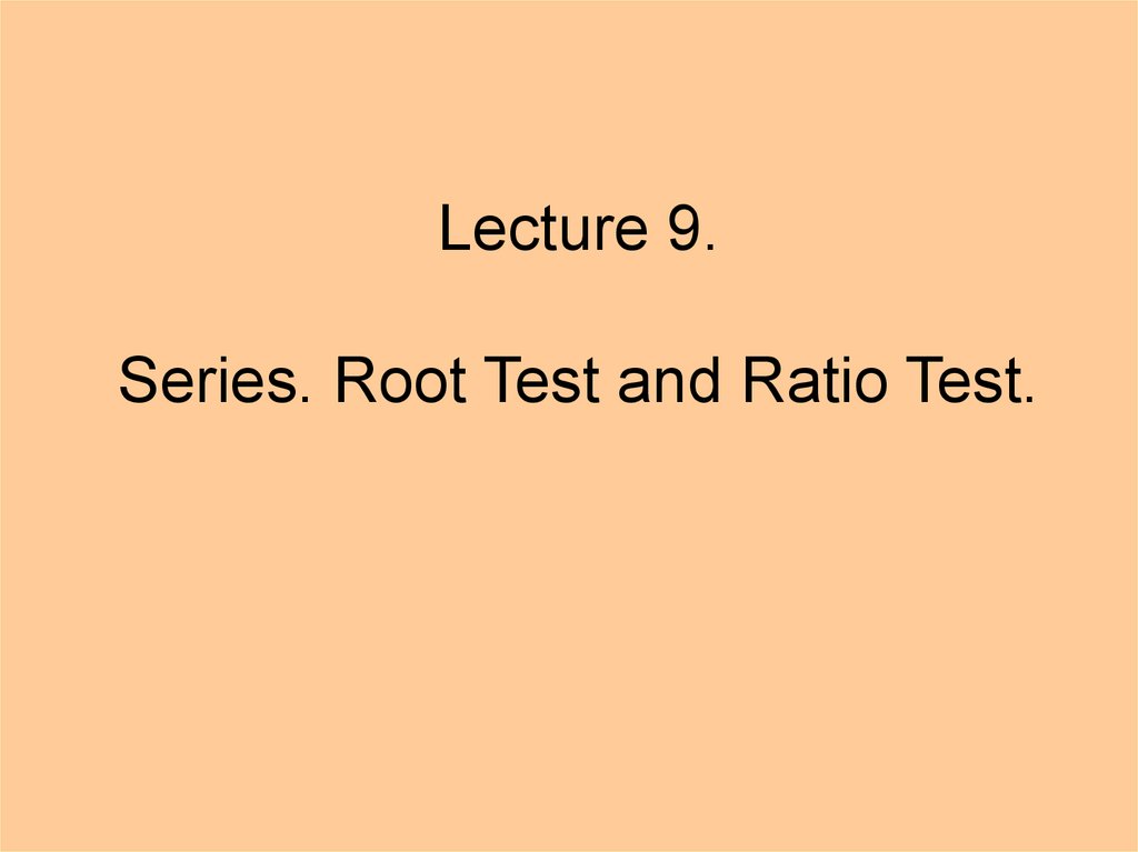 Lecture 9. Series. Root Test and Ratio Test