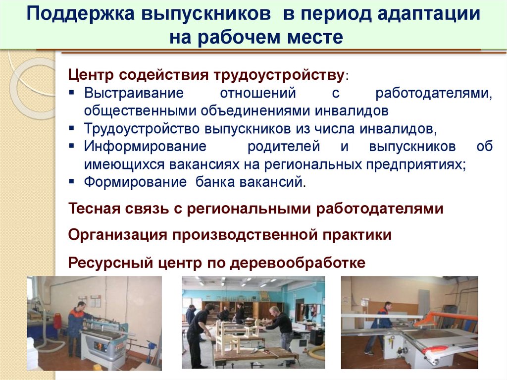 Поддержка выпускников в период адаптациина рабочем месте