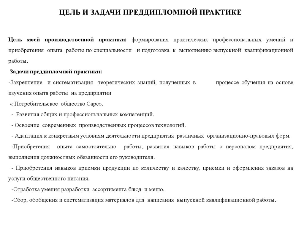 ЦЕЛЬ И ЗАДАЧИ ПРЕДДИПЛОМНОЙ ПРАКТИКЕЦель моей производственной практики: формирования практических профессиональных умений и
