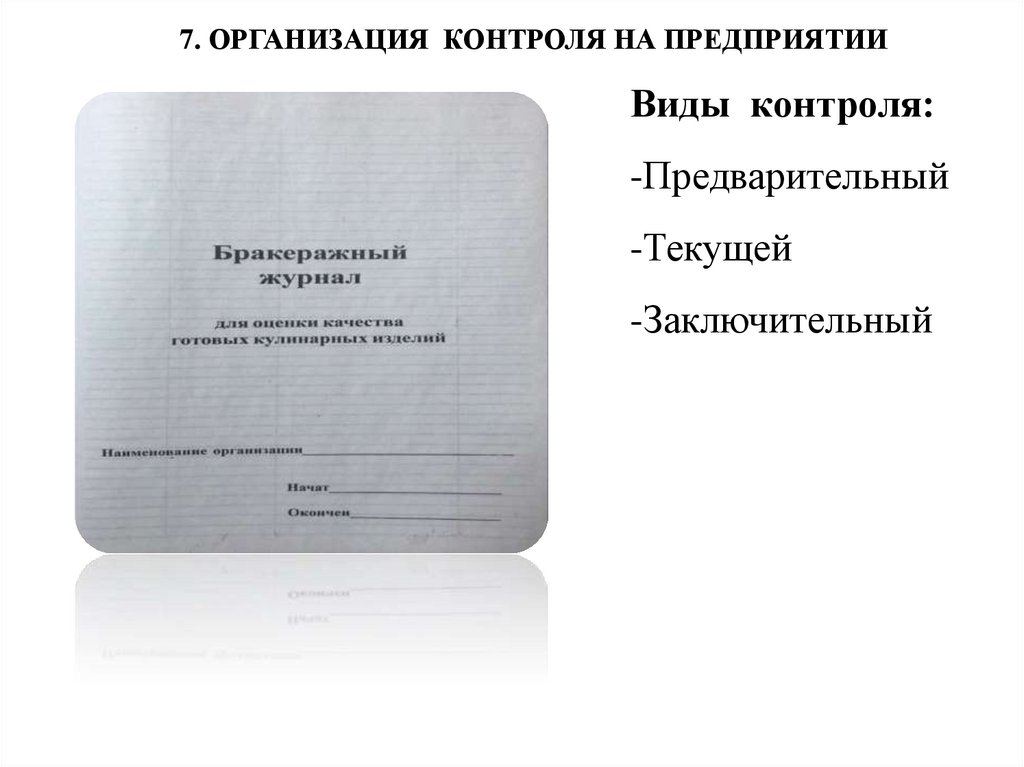 7. ОРГАНИЗАЦИЯ КОНТРОЛЯ НА ПРЕДПРИЯТИИВиды контроля: