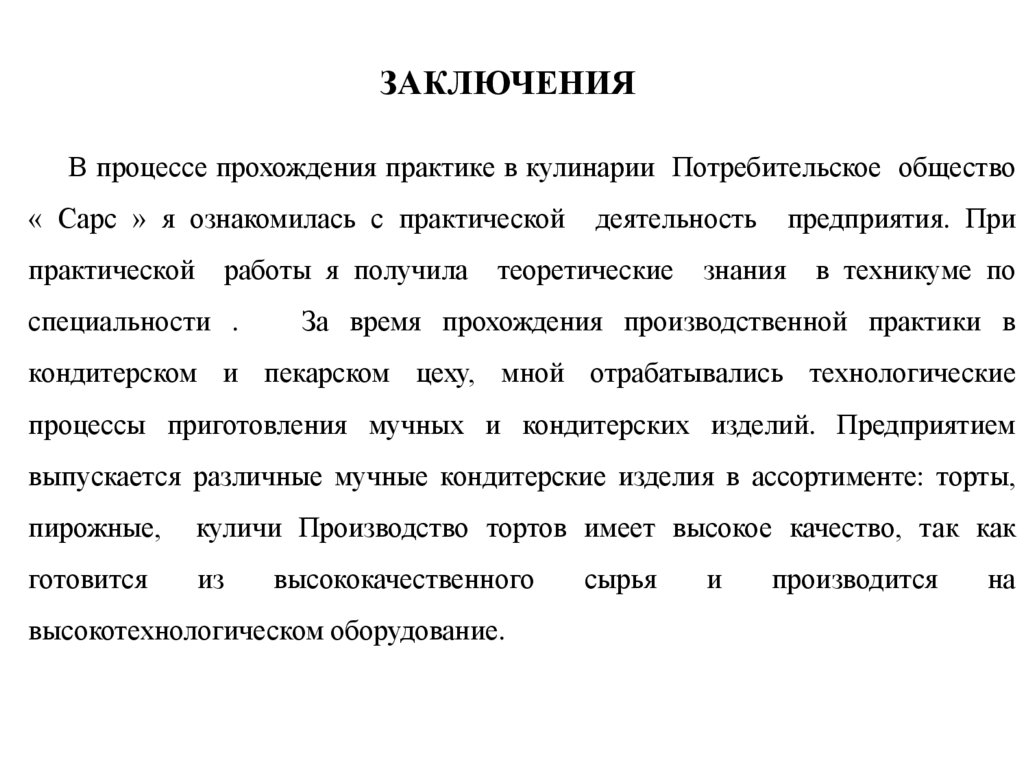 ЗАКЛЮЧЕНИЯВ процессе прохождения практике в кулинарии Потребительское общество