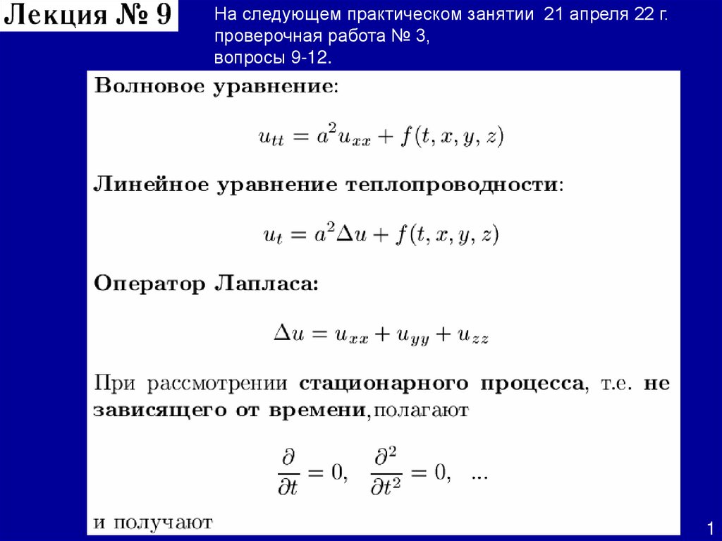 Уравнение теплопроводности. Стационарное уравнение теплопроводности