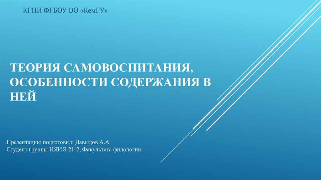 КГПИ ФГБОУ ВО «КемГУ»ТЕОРИЯ САМОВОСПИТАНИЯ,