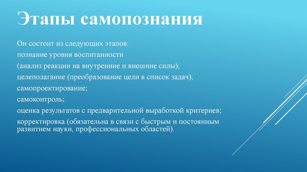 ВЫВОД:Основой самовоспитания является самопознание, которое,