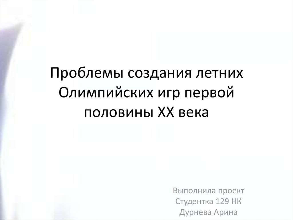 • Цель работы: Выявление проблем создания Олимпийскихигр в первой половине XXвека.