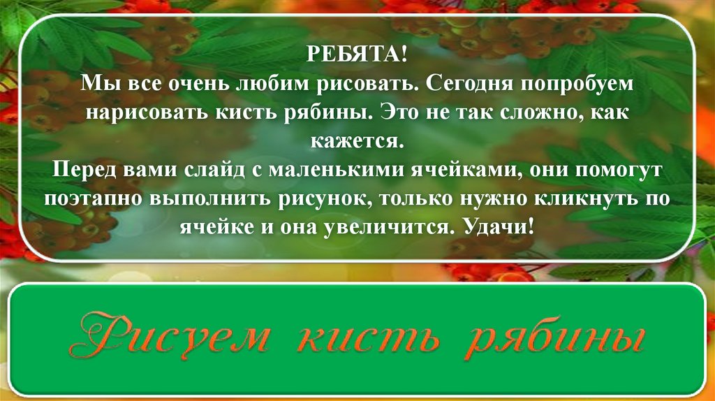 'Рисуем кисть рябины' с использованием технологического приёма 'экран'
