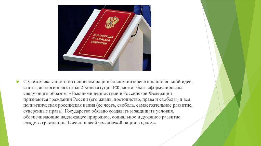 интересы и ценности должны быть отражены в Конституции государства, а