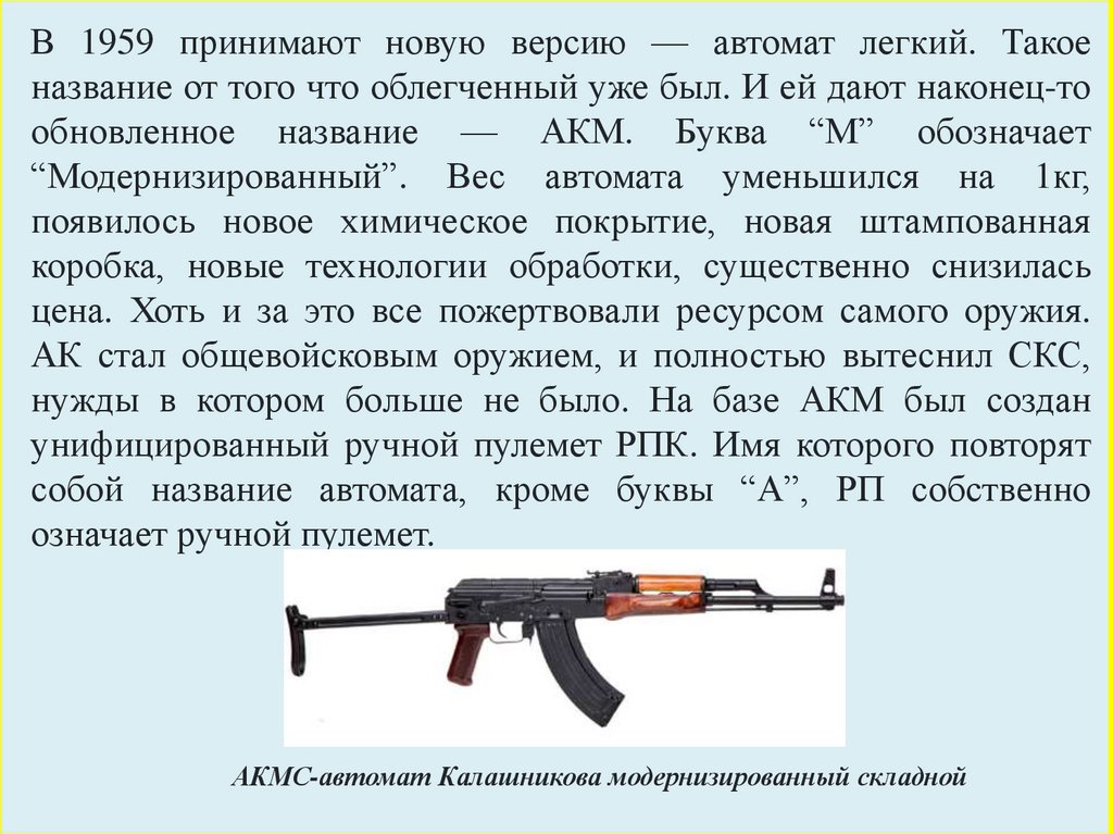 В 1959 принимают новую версию — автомат легкий. Такоеназвание от того что облегченный уже был. И ей дают наконец-то