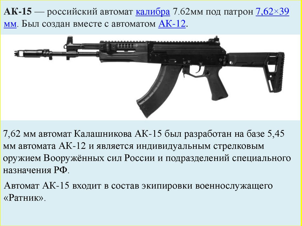 7,62 мм автомат Калашникова АК-15 был разработан на базе 5,45