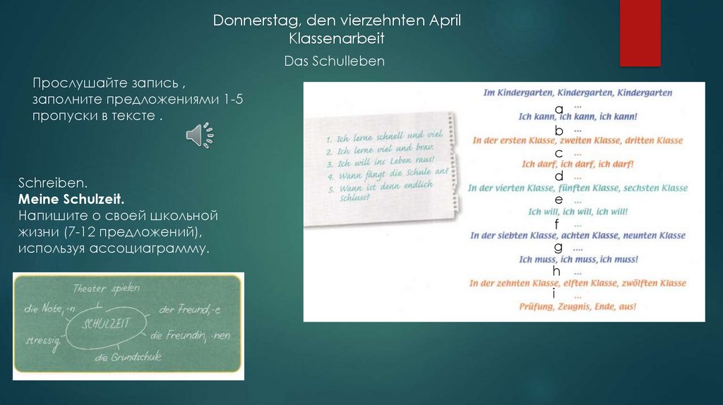 Donnerstag, den vierzehnten AprilKlassenarbeit