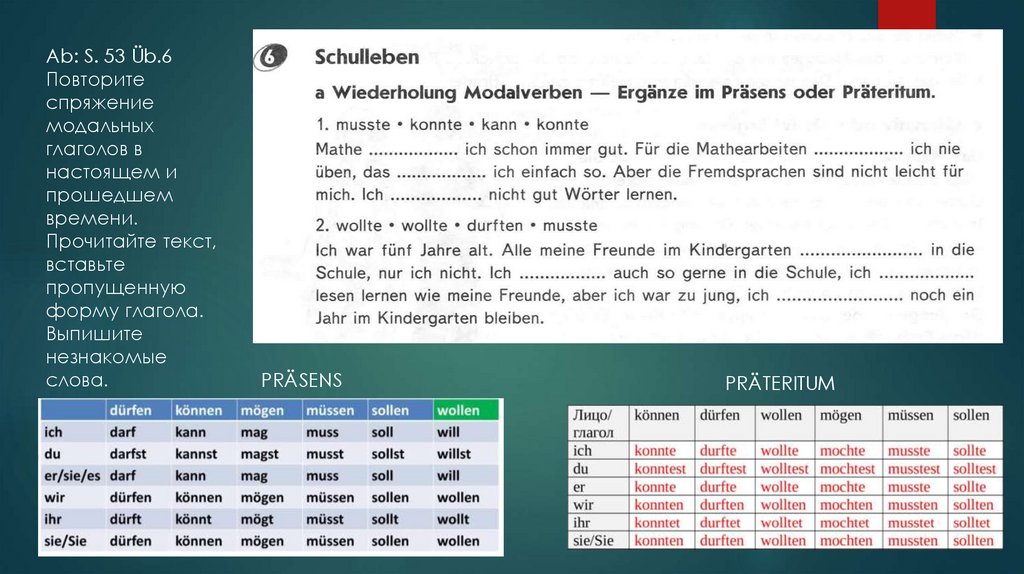 Ab: S. 53 Üb.6Повторите