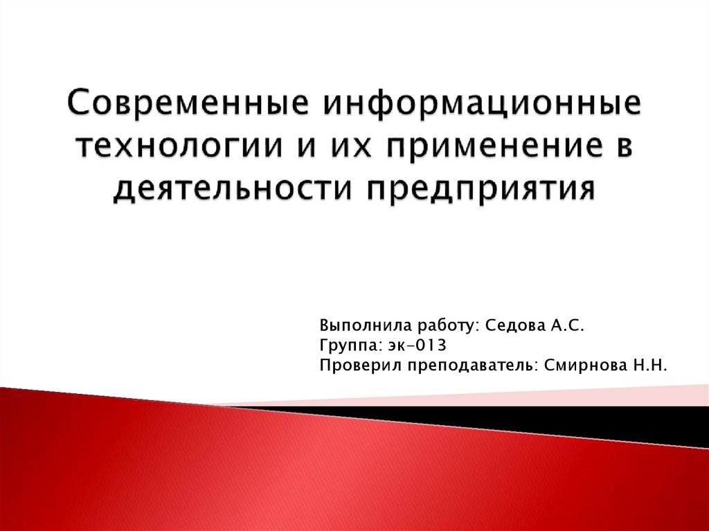 Современные информационные технологии и их применение в деятельности предприятия