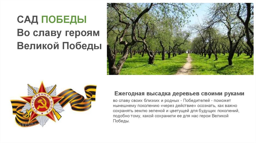 Высадка деревьев конкретно за каждого погибшего с мыслями не в память, а во Славу их, во