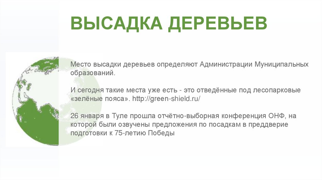 ВЫСАДКА ДЕРЕВЬЕВМесто высадки деревьев определяют Администрации Муниципальных