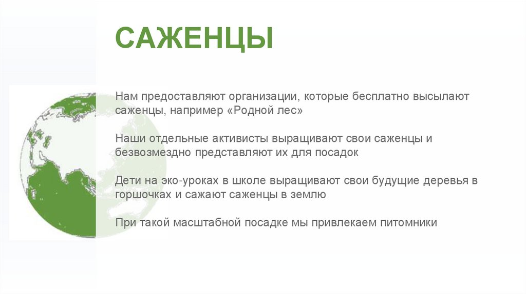 САЖЕНЦЫНам предоставляют организации, которые бесплатно высылают